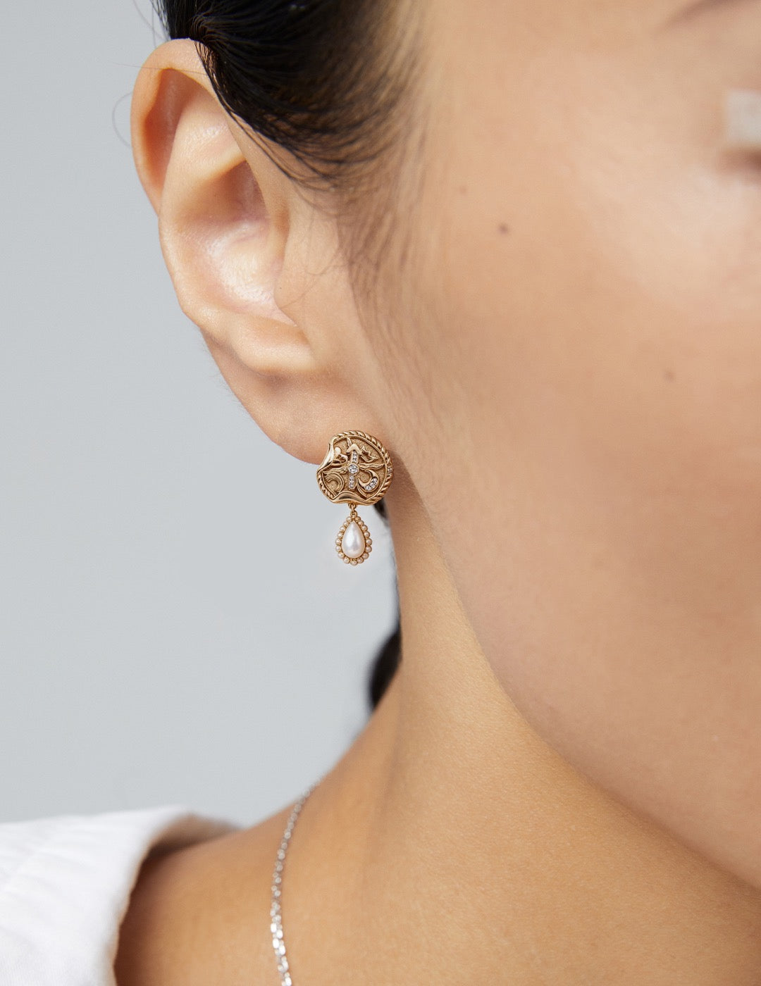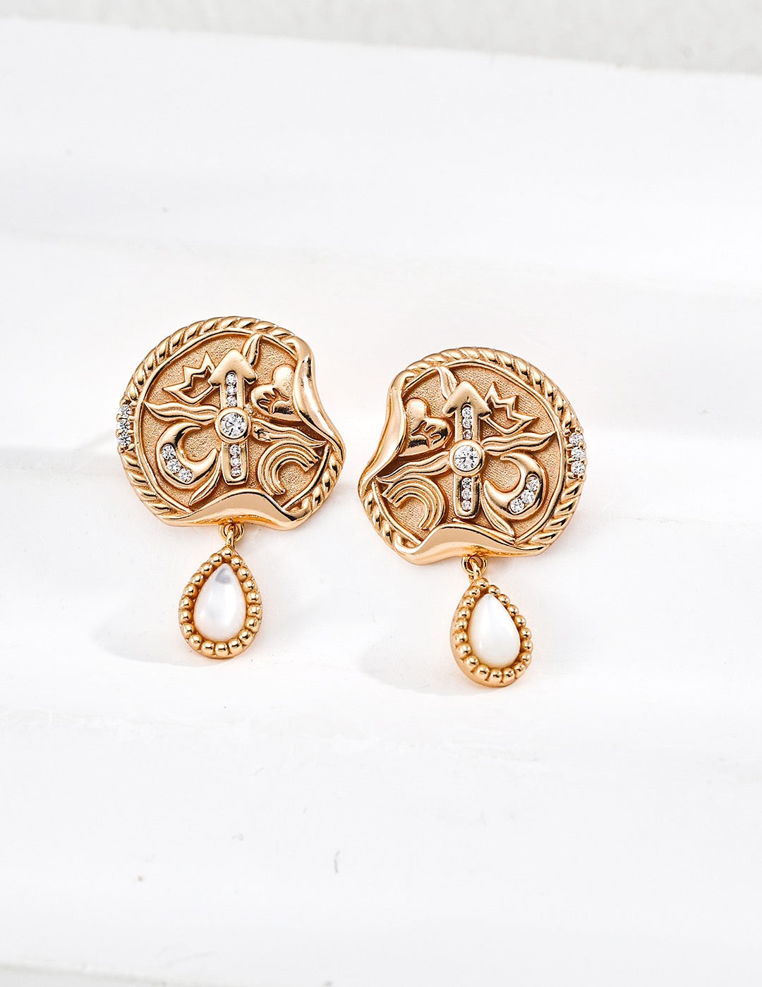 Diese Ohrringe aus 925er Sterlingsilber mit Perlmutt und Zirkonia fangen den surrealen Rhythmus der Zeit ein. Das Design mit Uhrenmotiven, neu interpretiert im surrealistischen Stil, wird durch verspielte Akzente wie Herzen, Kronen und Regenbogenmonde ergänzt und verleiht den Ohrringen einen zauberhaften Charme. Die Ohrringe sind aus 92,5 % reinem Silber gefertigt und in den Ausführungen Retro-Gold und Weißgold erhältlich. Jedes Paar besticht durch natürliches Perlmutt und funkelnde Zirkonia, die einen leuchtenden Kontrast bilden. Dank ihres leichten Designs sind die Ohrringe den ganzen Tag über angenehm zu tragen, während ihre zeitlose und zugleich einzigartige Ästhetik sowohl zu lässigen Outfits als auch zu festlichen Anlässen passt. Das hypoallergene 925er Sterlingsilber ist sanft zur Haut und macht diese Ohrringe zum perfekten Geschenk für Liebhaber surrealistischen Designs, Schmucksammler und alle, die symbolische und verspielte Accessoires lieben.